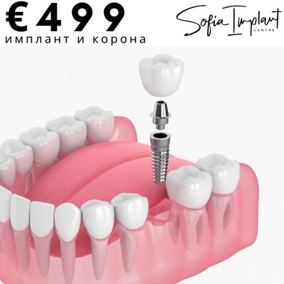 Офертата включва 1 титаниев имплант JDentalcare италианско производство и метало-керамична коронка. Процедурата изисква две посещения в клиниката в рамките на 4 месеца.