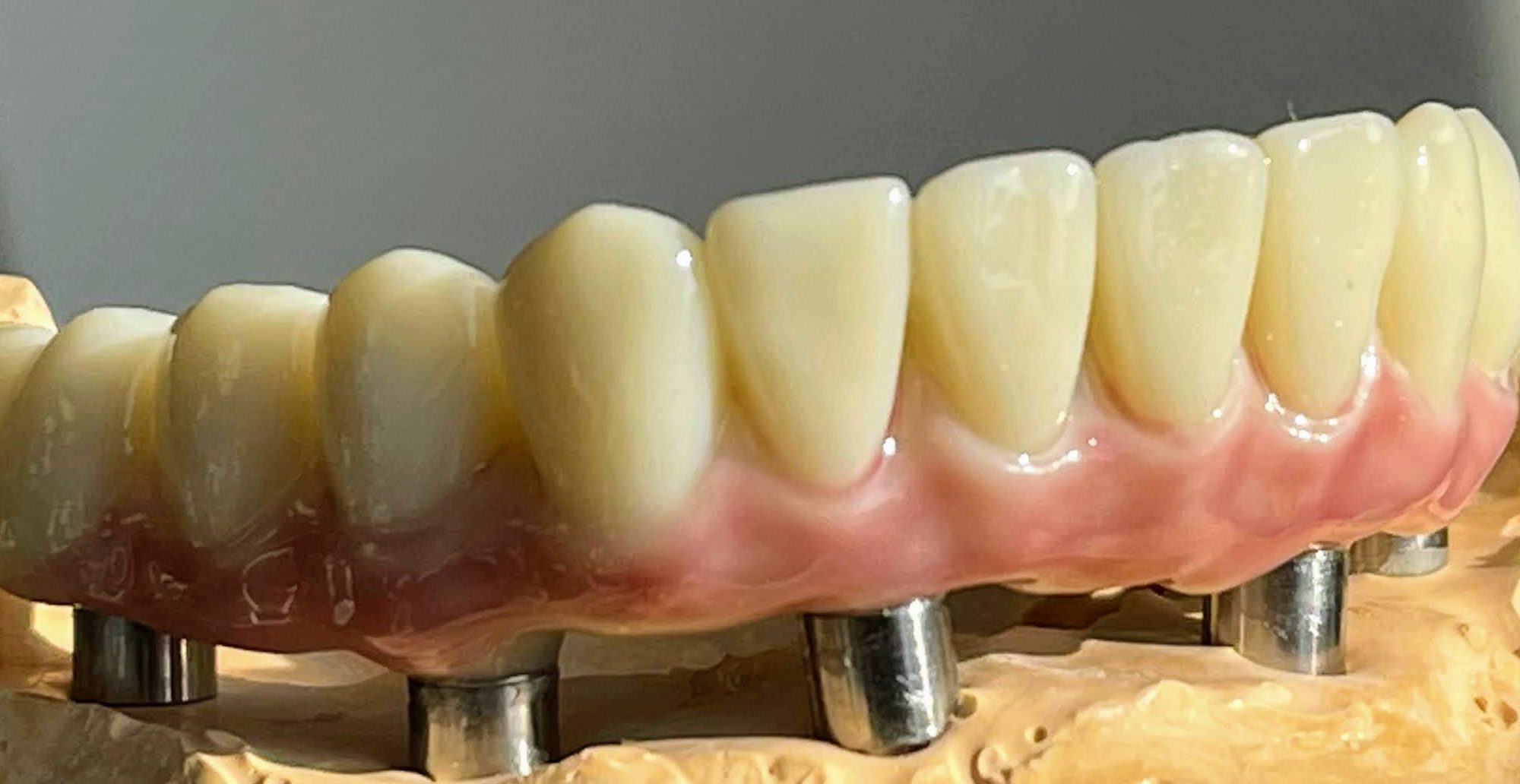 La structure temporaire est fixée de la même manière que la structure finale de la prothèse. Elle est nécessaire le temps que vos gencives se remettent de l’opération – environ 6 mois. Après cette période, la prothèse temporaire est remplacée par une prothèse définitive, souvent constituée d’un autre matériau (tel que le zircone) qui s’adapte exactement aux gencives restaurées. Ainsi, il n’y aura pas de trou entre la prothèse et la gencive. La construction provisoire vient en 2ème position, car nous avons vu des cas chez des patients où cette étape avait été sautée.
