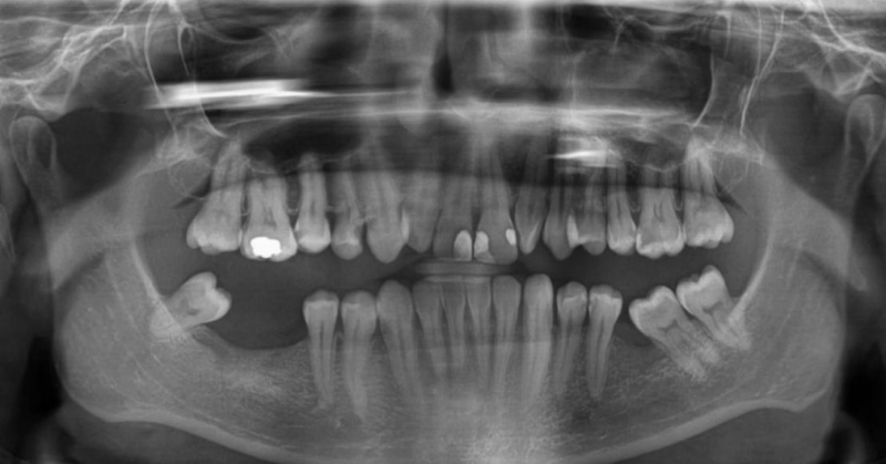 Hoe wordt een implantaatoperatie goed gepland? Het begint allemaal met een onderzoek ter plaatse en een röntgenfoto – dit is het eerste onderzoek dat algemene informatie geeft over het geval van de patiënt en de aan- of afwezigheid van voldoende kaakbot voor implantatie. Hier is een voorbeeld van een panorama(röntgen)foto: