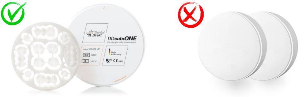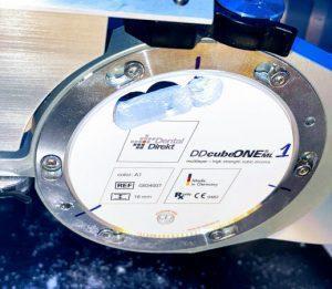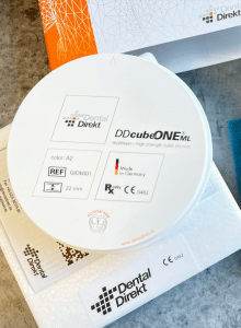 Zirkonium Kronen worden gefreesd uit speciale blokken die “blanks” worden genoemd. De hierboven getoonde zirkonium blank kost ongeveer €300. Het is gemaakt in Duitsland, heeft alle relevante certificaten en voldoet, zoals u van ons verwacht, 100% aan de hoge kwaliteitseisen. Dit is de norm die we hanteren in het Sofia Implant Centre.