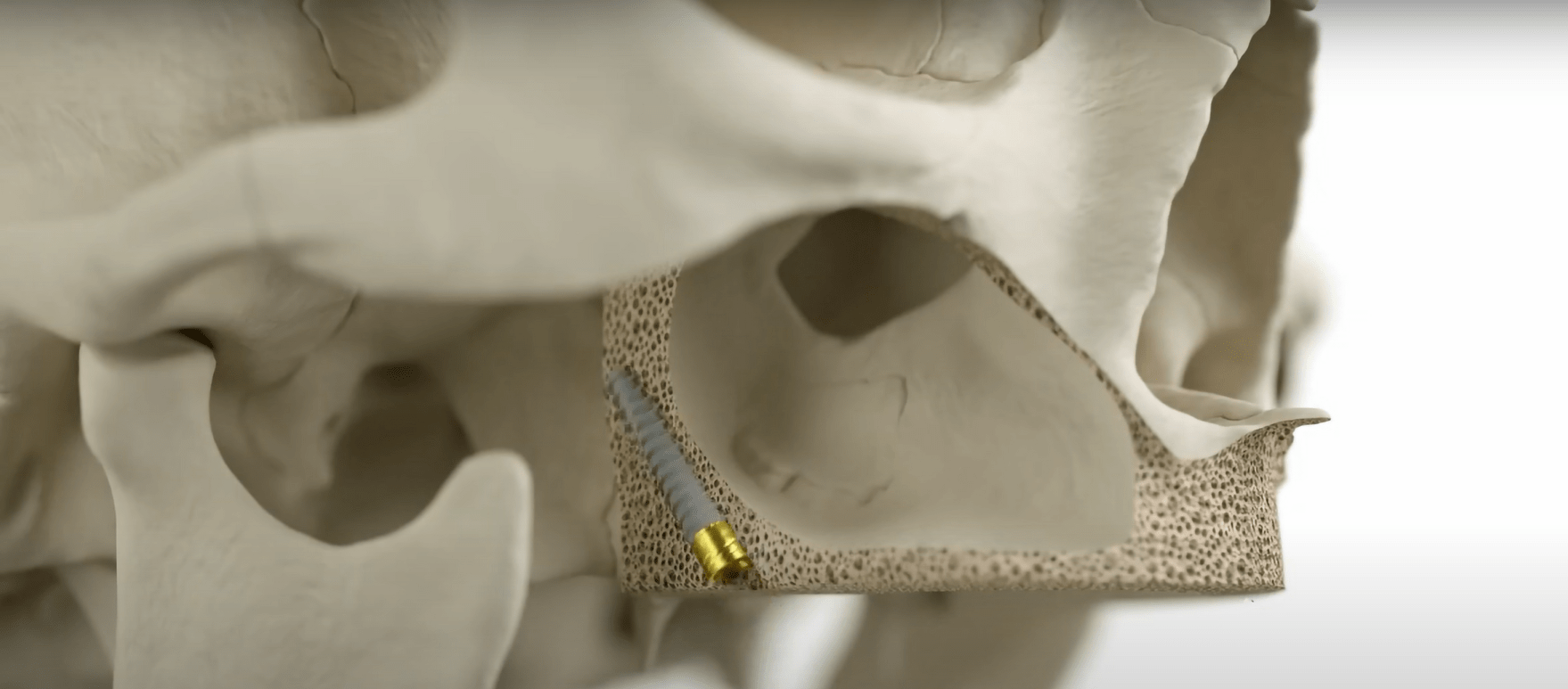 – PTERYGOID AND TRANS-SINUS IMPLANTS: The pterygoid and trans-sinus implant procedures are groundbreaking procedures which provide a viable solution for patients with severe bone loss in the upper jaw, who would otherwise be ineligible for dental implant treatment. (read more here)